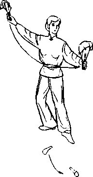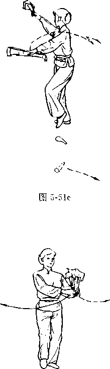 两手心相对.重心到右脚(图5-51b)o