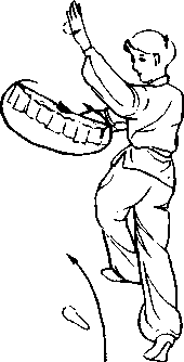 图 3-16b图 3-16b图 3-16c图 3-16c③左手由右扇下抽出向左上 方挡出至左额上方,目光随左手动 (图 3-16c)o③左手由右扇下抽出向左上 方挡出至左额上方,目光随左手动 (图 3-16c)o