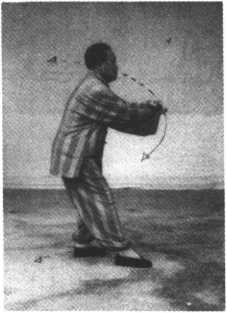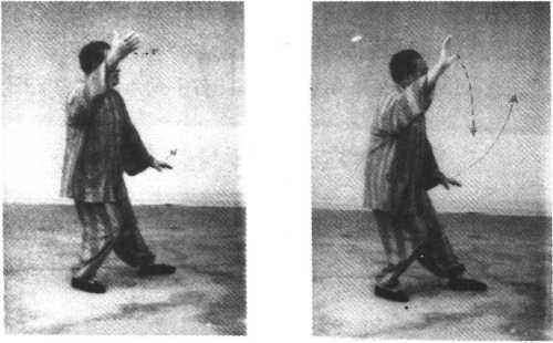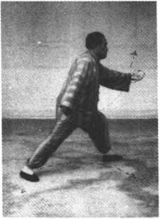 特别说明:《太极拳体用全书》所列此式的图与白鹤亮翅式图 同,这与实际所传的动作有异。现根据家传练法予以订正。像这 种照像技术不满足需要的情况在个别拳式中也存在。如揽雀尾左 搠式,抱虎归山式,斜飞式。抱虎归山式和斜飞式方向是斜角,所 列的图是正方向的。