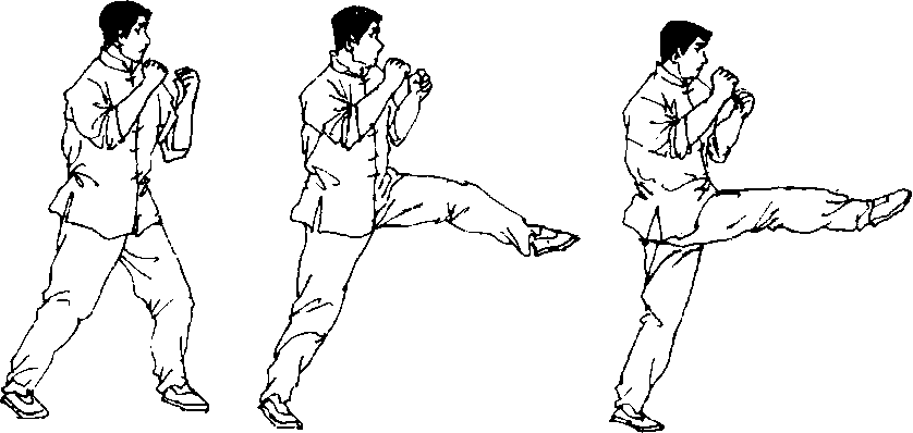 此练习是要求实践者将前踢与其它技术同时进行。
