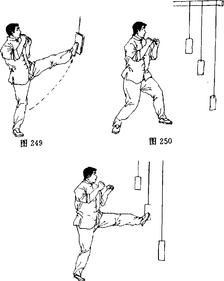 (1)练习移动中前踢,练习2?3分钟(图246—图248)。