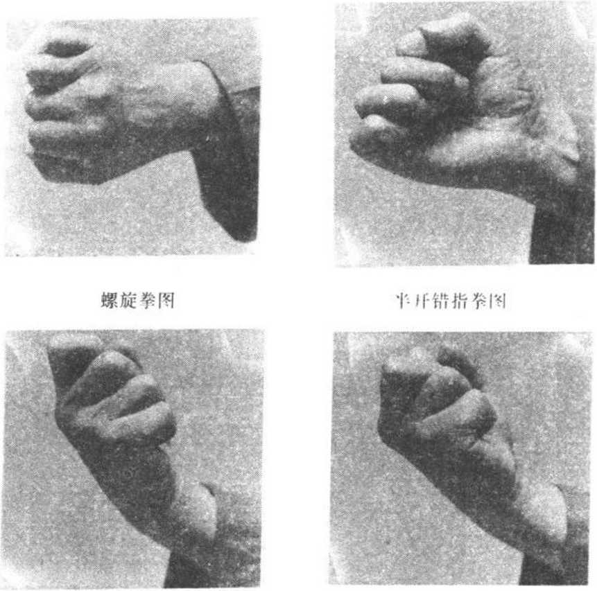 凸,无名指和小指依次向里裹合蜷屈。力点在中指第二指 关节,多用于螺旋形向前钻打、点击(见中指尖拳图)