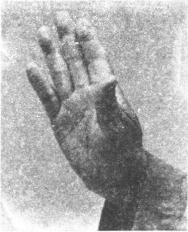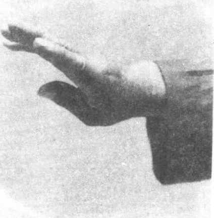 立掌:塌腕,掌心微凹,拇指及拇指下方的鱼际肌群 向掌心裹合,其余四指并拢伸直。(见立掌图)