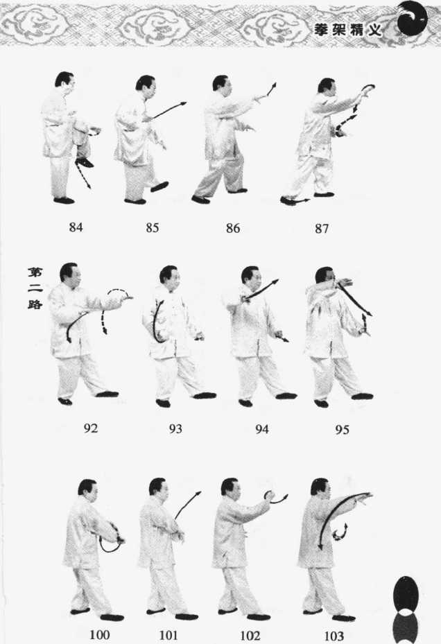 都是空走招式,所以完成套路的时间 比较短,虽然在前文中讲述了许多拳 架理法,而初学者在短期内不会很快