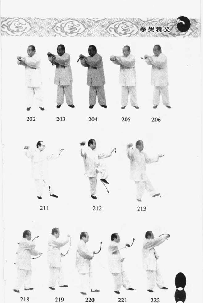 有关二十二式太极拳架和内功 理法的修炼内容,北京乐明根科技发 展公司(67185186)在录制本人全套 动作的基础上插配了大量神意气流 走的动画,以全面展示太极内功在拳 架中的运行规律,彰显招与术契合的 I轨迹与时机,有兴趣者可参照光盘研 习。