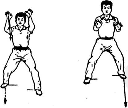 技击要领:上步以两掌切击对方颈部或胸助。要求进步进身, 步疾手快,发力要狠,力达小指一侧。