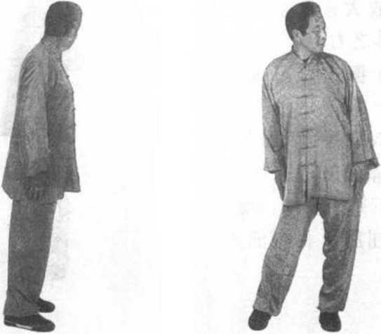 ①身体成左前式站 立。目视前方(图82)。