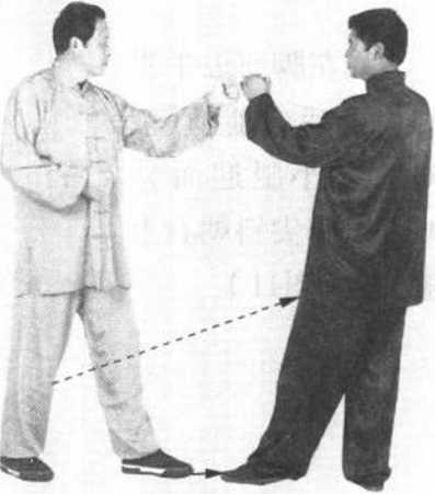 ①敌我双方均左前式 站立。目视对方(图13)。