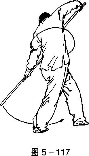 手下压,使棍斜贴左肋。目视左后 方(图5-117)。