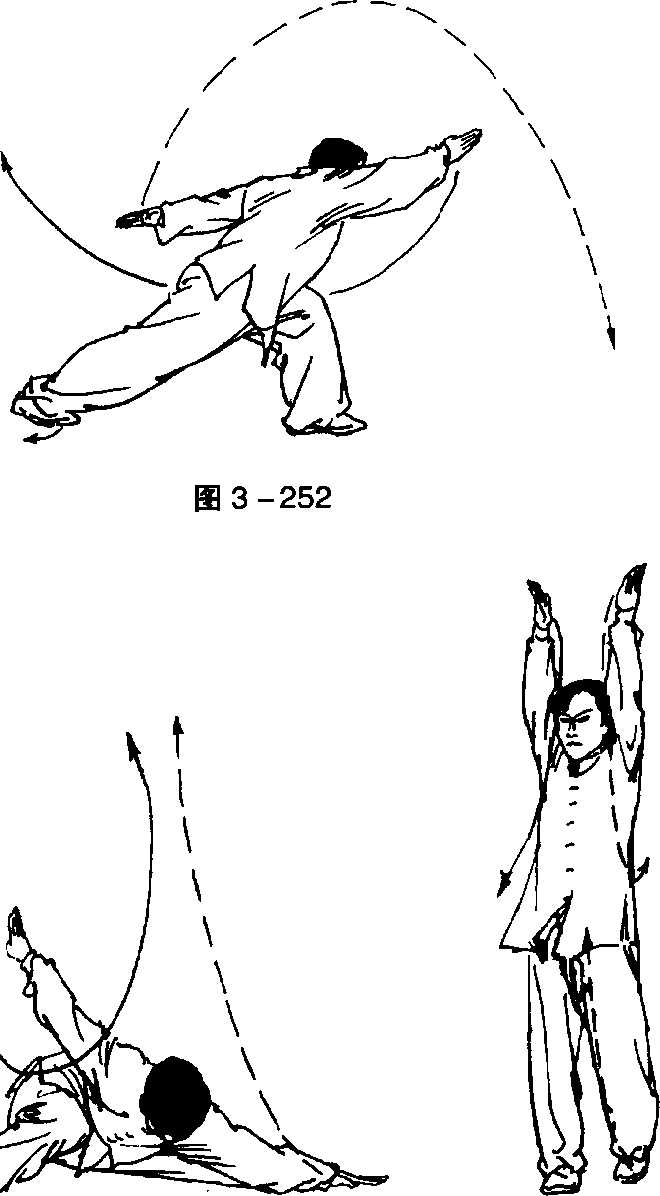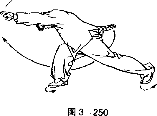 70动作同右乌龙盘打,惟方向相反(图3 -250、图3 -251、图 3 —252、图 3 - 253) c