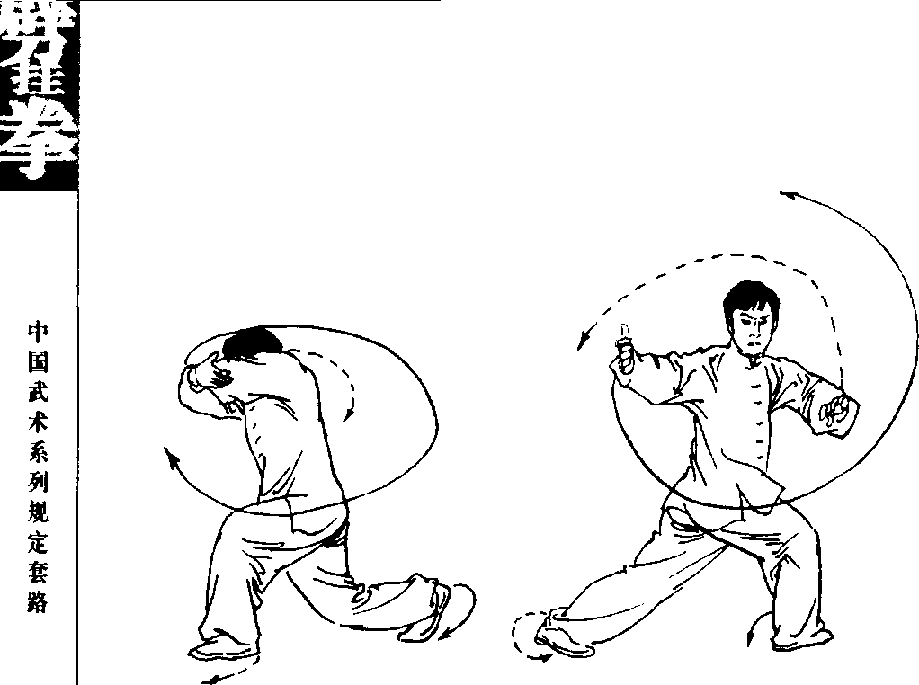 臂;同时右脚提起成左双弓步。目视右手方向(图3 -292)。
