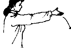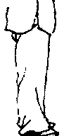 后脚尖朝前或外撇,两脚外缘同肩宽。一腿屈膝半蹲,全 脚掌着地,脚尖斜朝前,另一腿微屈,以脚前掌或脚跟点于身 前。(图 1-21. 1-22)