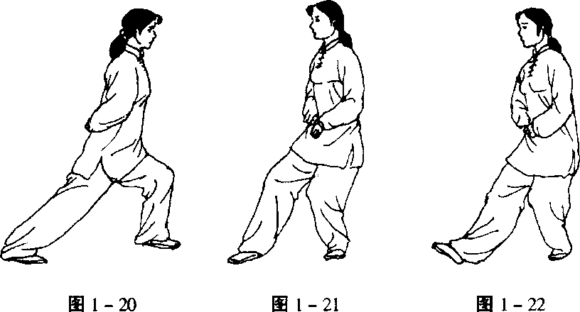 称为川字步),前腰与脚尖垂直,变势时可超出。(图1-20)(二)虚步