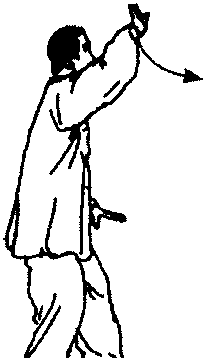 ② 由提手上势接白鹤亮翅过程中,身体不可立起,但有上 拔气势,右腿仍要坐实,用腰带动两臂上下分开。