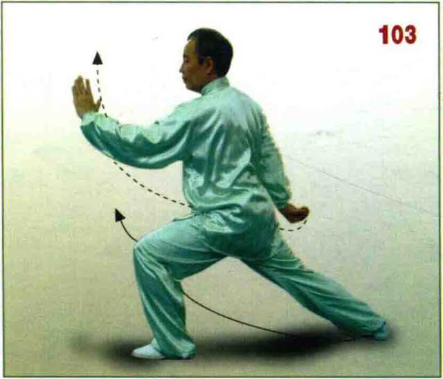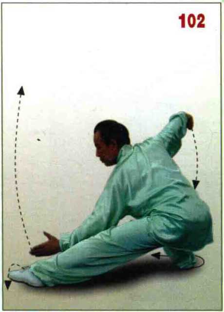 左腿屈收,左脚下垂收于右小 腿内侧;上体右转;右臂稍内合,右 手变勾手。左手经头前划弧摆至右 肩前,掌心向右,指尖向上;眼看右 勾手。右腿屈膝半蹲,左 脚脚前掌落地,沿地面 向左侧伸出,随即全脚 踏实,左腿伸直;左手落 于右肋侧;眼看勾手。右腿屈膝全蹲,上体左转成左 仆步;左手经腹前沿左腿内侧向左 穿出,掌心向外,指尖向左;眼看左 手。重心移向左腿;左 脚尖外撇,左腿屈膝前 弓;右脚尖内扣,右腿自 然蹬伸。重心恢复至弓 步高度;左手继续前穿 并向上挑起;右勾手内 旋,背于身后,勾尖朝 上;眼看左手。