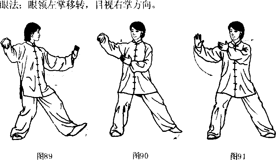 [动作一:右转撑掌](图89、90、91)