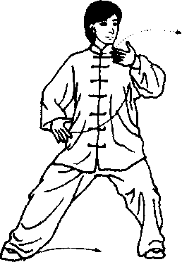 身法:上体左转,胸向东南,重心左移。