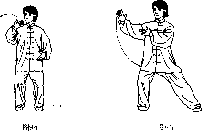 [动作三:侧步右云](图94、95)