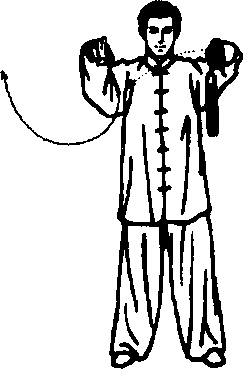 身法:身体正直,重心右移,开步后重心仍移 回两腿间,胸向正南。
