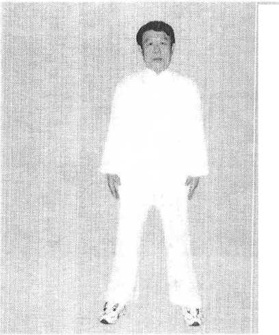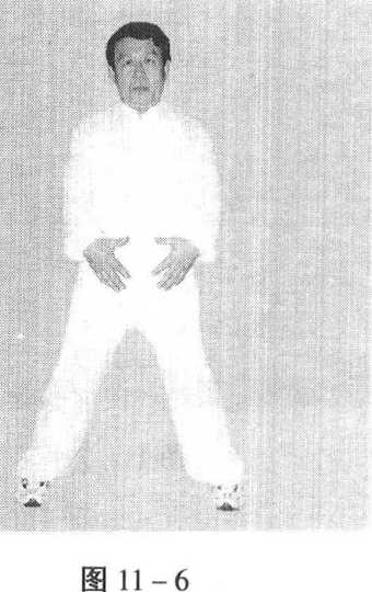 丹田,头似顶悬,舌抵上腭,呼吸自然,双目微闭,进 人无极态。(图11-5)