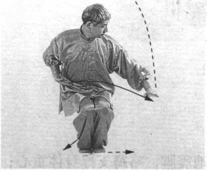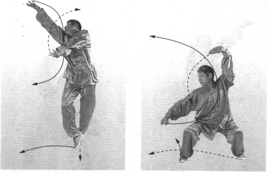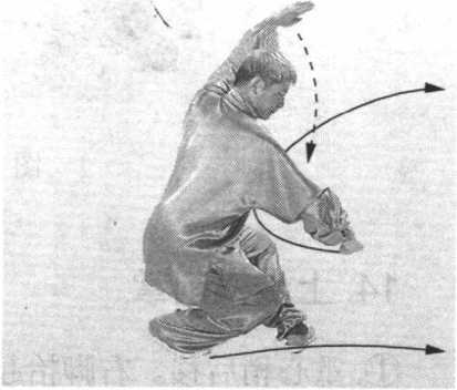 要点:跳起不要太高,侧行闪展要轻快迅捷,下按、撞击 要同时,掉掌抖腕要有弹抖劲,整个动作要连贯、协调、完 整。
