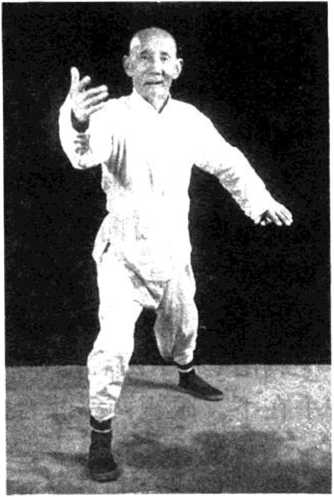 接斜&势。左脚变虚, 略提左脚,仍落原地.再坐 左腿,重心移左腿同时收 回右脚?足之地,脚跟点 地,脚尖翘起,两f■随即左 右互相向内提合.右手在 前,左手■■在后,两手心斜相 对,即左手对右肘窝,两臂 下对两腿.含胸拔背,松腰 胯.沉肩坠肘,提顶地向前 提合,坐手腕。眼向提合两 手的前方平视(图74)。
