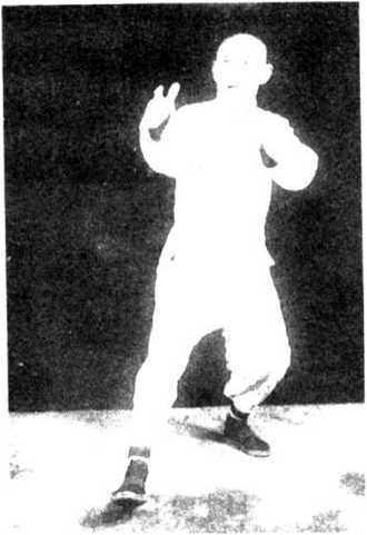该式主要用开劲,配合急转身动作,上下相随进攻 以出奇制胜。