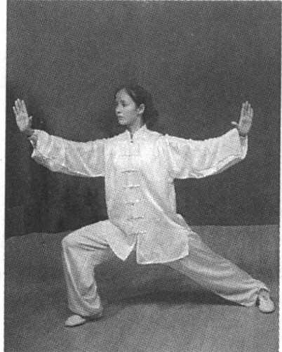 Key points: Drop the left hip and keep your weight steady. Relax the right hip to draw in the right hand and foot and shift your