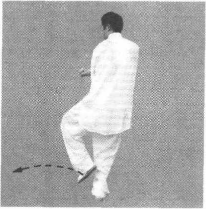 图 7 - 283要点:此势为跳步转身,稳,换跳步不必过高。两臂要松肩沉肘,力达拳背。? 226 ?一图 7 - 283要点:此势为跳步转身,稳,换跳步不必过高。两臂要松肩沉肘,力达拳背。? 226 ?一7-284右脚与左脚换步跳跃时,落地要7-284右脚与左脚换步跳跃时,落地要