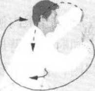6 .右掌以腕为轴顺缠丝,在左胸前侧逆时针划弧,并随即