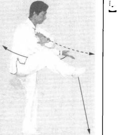 脚欲踹之.单腿独立。转身须拧腰顺胯,右腿外旋。