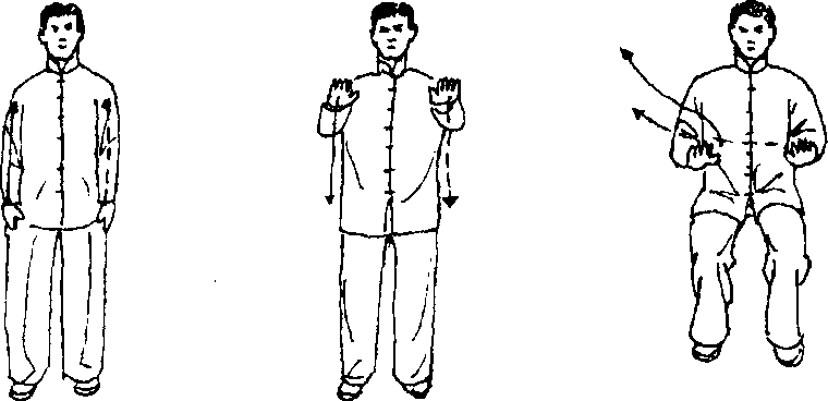 动作同“搂膝拗步”中的“(一)开步直立” (图 231 )c