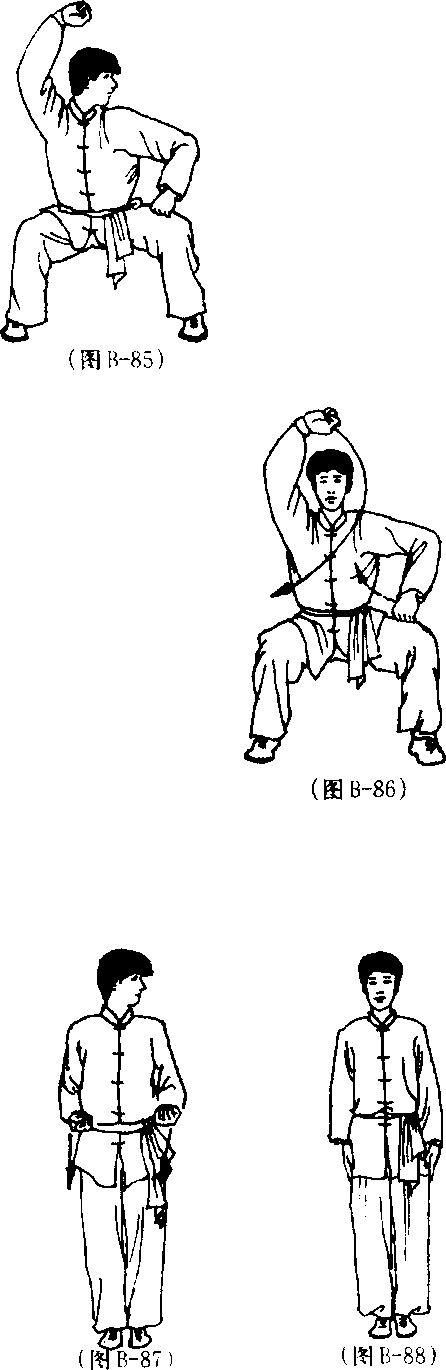 (图 B-84)(图 B-84)(3) 接上动,上体略左转、左 脚向左落步,右脚不变,两腿屈膝