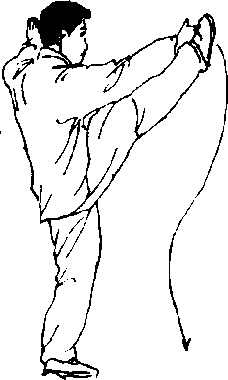 【要点】 踢腿要慢,击拍要准确,单腿站立要稳定;上体保持 正直,不要前俯后仰。