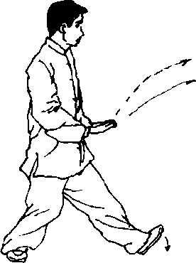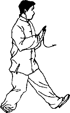 (2) 重心移向左腿并屈蹲,右脚尖微内扣;上体微左转(胸向