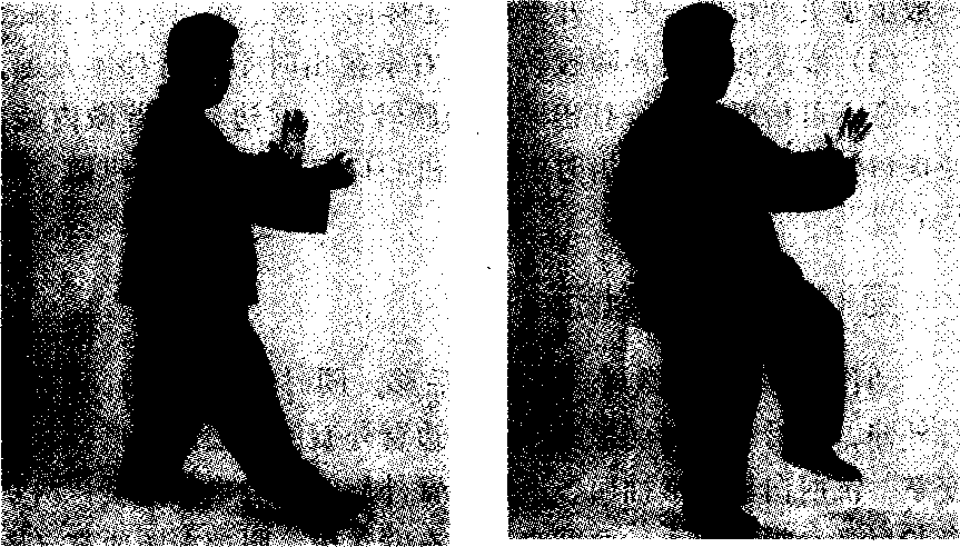 (2) 在连续进步时,要求“迈步如猫行”,并要求速度均匀, 上下相随,上身要正直,不可歪斜和仰俯。右脚前上一步时要比 一般步型更开得阔一些,并要避免上体随右脚上步而向右倾斜。