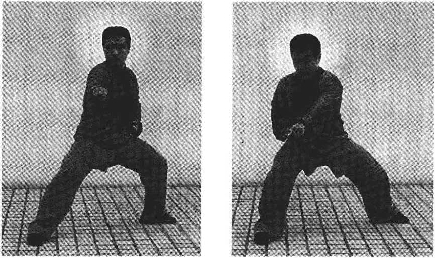 3.11.3 马步弹撩(见图 3 - 83 ?3 - 84)O Horse stance and spring upwards( Fig. 3 - 83 ?3 - 84).