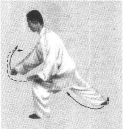 ② 栽捶前做的两个搂膝拗步,是为了前后连接,使之不在原