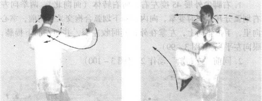 ② 两掌合抱时,要与转身动作同时开始,同时完成。