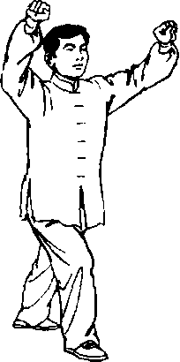 双臂缠绕的速度应一致,推掌、 上步完整一气。