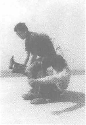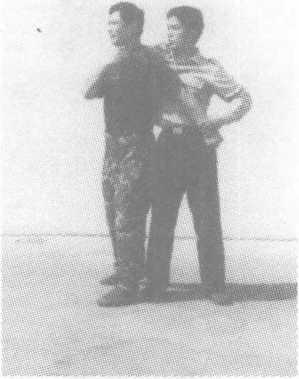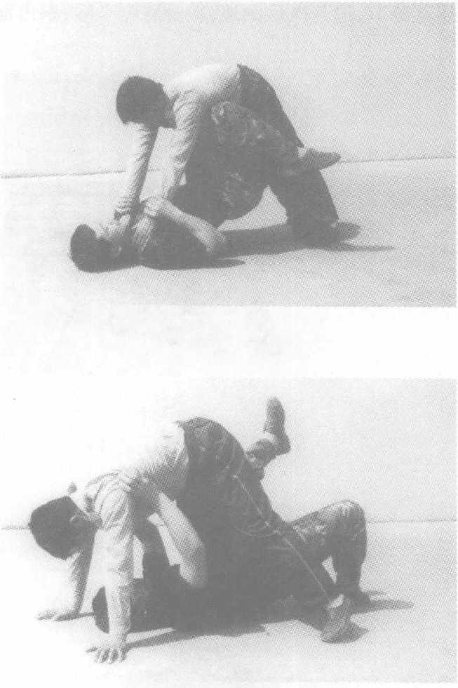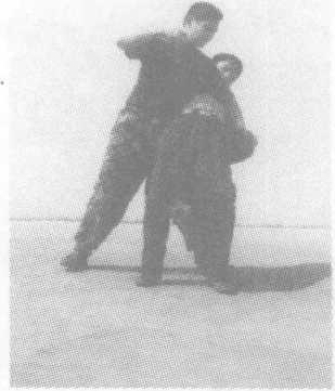对方左手抓住我左手腕,右臂从背后挟锁我颈部。我可用右 手抓住其右手腕。左腿插入其右腿后侧,紧接左后转体贴靠,以左 大臂和左腿将其别倒。(七)破正面抱腰当对方由前抱腰时,我起右膝猛顶其裆,以肘部(或勾拳)击打 其头部,敌即刻失去战斗力。(八)破背后抱腰当对方由后抱腰时,我猛然下蹲,迅速降低重心;弯腰抱右小 腿同时坐压其膝节,迫其向后倒地,转身膝跪卡喉,拳击面。(九)破仰卧掐颈我倒地后被对方双手掐喉制压时,我用双手抓住对方手腕,下 身左右摆动。在对方身体颠簸的同时,用膝顶撞对方一侧肋骨,随 之用另一膝向前顶击其臀部,将其向前摔击。