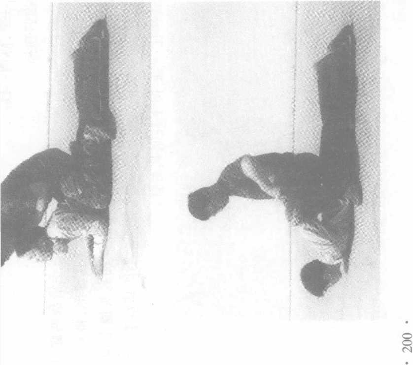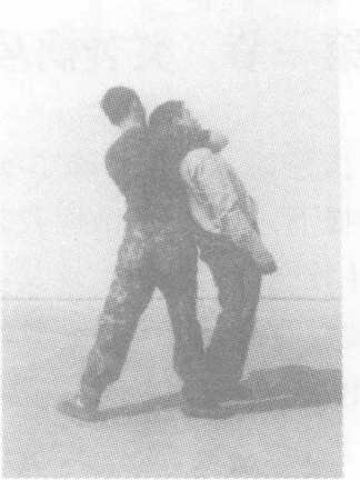 要求:接敌隐蔽、迅速,力求抓腕、锁喉与踹膝窝同时完成;右 臂锁喉时,右手臂应顺其下颌向左插,而不要去搂;背摔要转体送 懿、俯身、弓腰,协调一致。