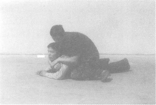 要求:抱膝与顶臀要同时用力,顶摔时要将对方双腿拉至自己 的两腿之间;骑腰要迅速,锁喉要准要狠并上提。
