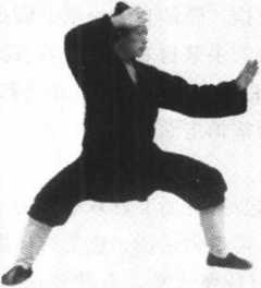 用法:若连击之中对方又一记打来,我遂用右手粘住其腕 同时左掌拂其右肘,或提托推发,或肘腋下击,或右架下,打 肋部,均可奏效。