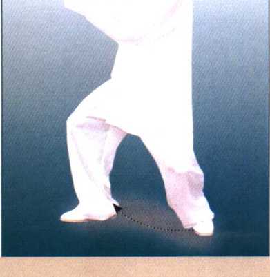 身体右转,左腿弓膝踏劲,重心移 向左腿,右脚以脚跟为轴,脚尖外摆90 度。同时左手顺缠,右手逆缠,两手随 转体同时向右转,成右采左捋势,臂成 弧形,掌心翻向外,掌指斜向前上方。 (图6)