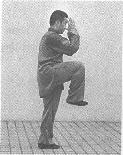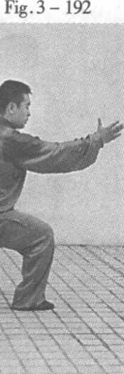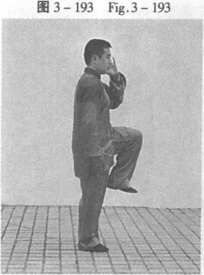 3.56.1 提膝挑掌(见图 3 - 192 ?3 - 193)。Lift knee and snap palm (Fig.3-192-3-193).