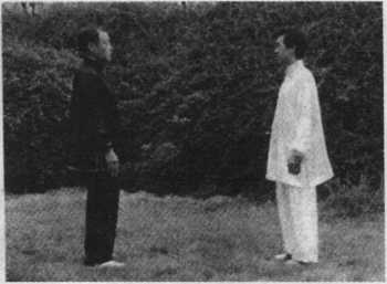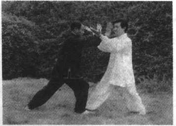 两手缠绵不断线, 足跟牢固意九泉; 练到两臂如秤灵, 欲加毫厘在意先。