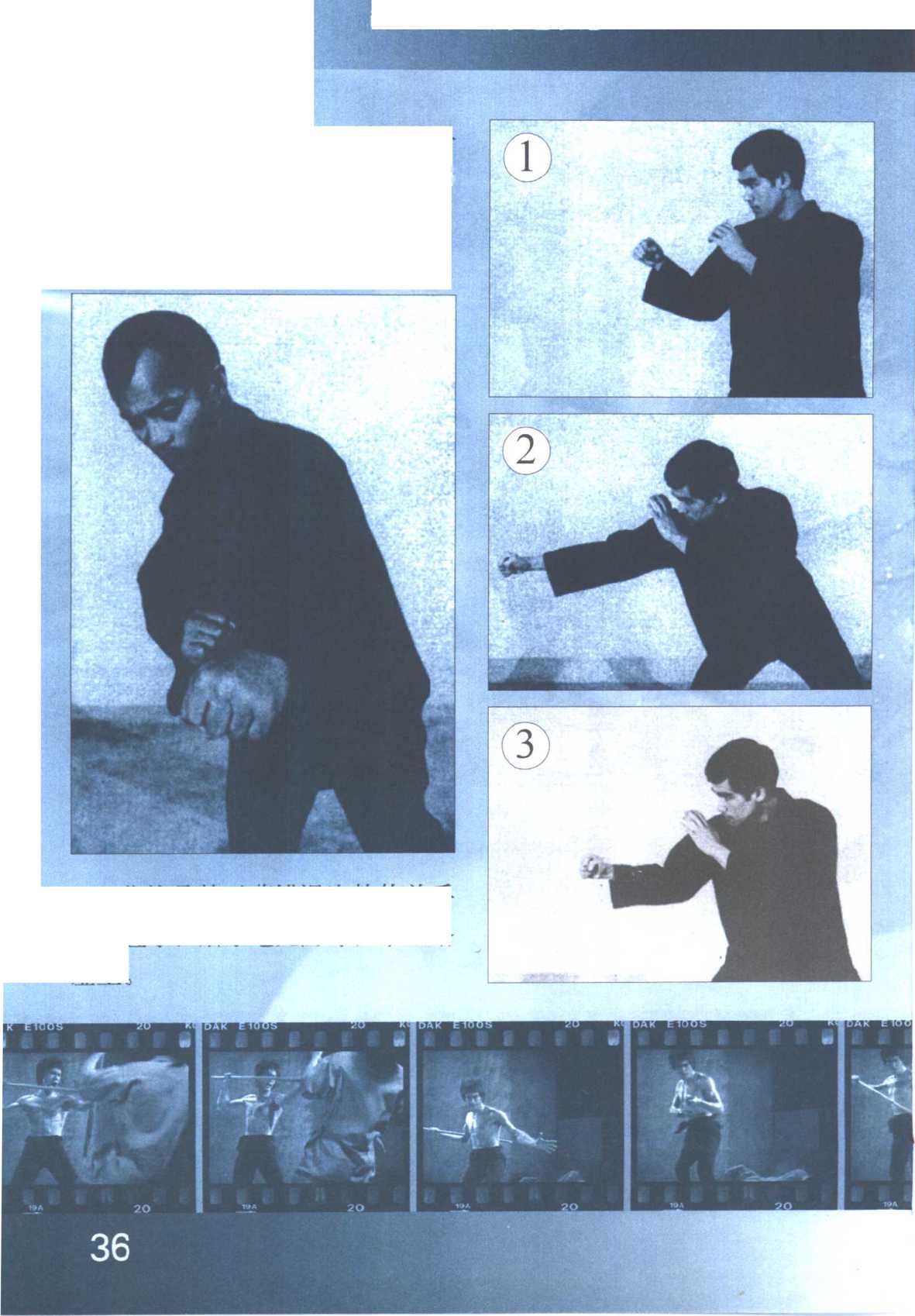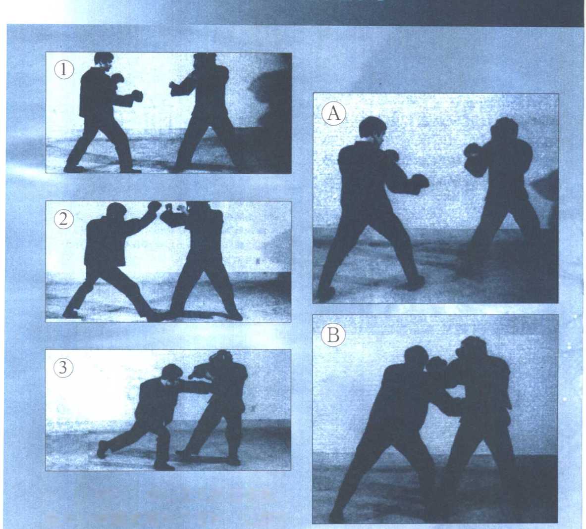 ⑴至⑶,李小龙先发动佯攻, 趁对手受骗把两手升高时,以前手⑴至⑶,李小龙先发动佯攻, 趁对手受骗把两手升高时,以前手中段直拳乘虚而入。中段直拳乘虚而入。