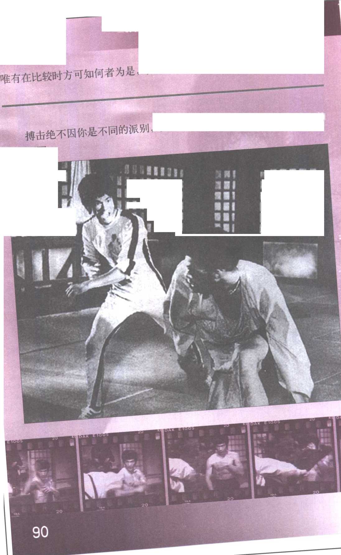 由运动和运用各种动作,是一启发 自我之武术。武术绝非是装饰物 的,是一种选择的方法,无论多正 .确,亦唯有使人限于模式内。搏击 是瞬间千变万化的,依循着某种的 模式练习只会导向阻碍自己之途, 欲由之深解自己是绝不可能的。