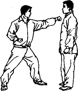 搬拳、拦拳要看准时机,及时化解甲方前冲之 力;上步冲拳反击要快速连贯,迅猛准确。